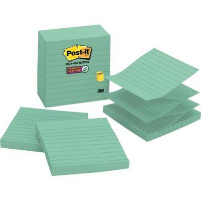 Post-it Super Sticky Pop-up Notes stick practically anywhere. Revolutionary adhesive technology ensures your notes will stick securely to more surfaces. Stick your notes where they'll really get noticed like monitors, doors and walls. Pop-up feature offers the convenience of grabbing just one note, with just one hand. The accordion-style notes pop up one at a time from a specially designed Pop-up dispenser (sold separately), keeping the notes at your fingertips. Notes are ruled so you can make neater notes. The paper in Post-it Notes is sourced from certified, renewable and responsibly managed forests. Each pad includes 90 sheets.